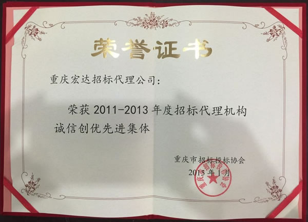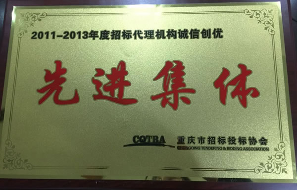 我公司榮獲重慶市招標投標協會2011-2013年度誠信創優先進集體及2014年度先進招標代理機構先進集體稱號